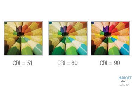 De kleurwaarneming door het menselijk oog is afhankelijk van de kleurweergave-eigenschappen van de lichtbron en wordt uitgedrukt in Ra op basis van de kleurweergave-index. Deze geeft aan in hoeverre de kleuren van een object, zoals waargenomen door het oog, overeenstemmen met die van een referentielichtbron. Een lichtbron met Ra=100 geeft alle kleuren optimaal weer. Hoe lager de Ra-waarde, hoe moeilijker kleurherkenning wordt. De minimale Ra-waarde op kantoor of school moet 80 zijn.