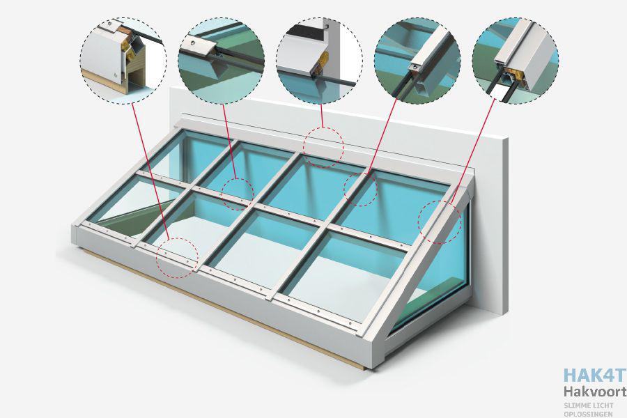 Een lessenaarskap van glas, is een lichtstraat met één hellend vlak en één rechtopstaand vlak. Het hellende vlak, ofwel schuine kant, is altijd lichtdoorlatend. Ook is het mogelijk om het rechtopstaande vlak, ofwel rechtopstaande kant, te voorzien van lichtdoorlatend materiaal. Een lessenaarskap is geschikt voor meerdere type daken. Als ervoor wordt gekozen om de schuine kant tegen een gevel te plaatsen of in het dak te integreren spreken we van schuine beglazing . Een daglichtconstructie zorgt voor natuurlijk daglicht in een gebouw. Daglicht zorgt ervoor dat mensen zich gezonder voelen, productiever en creatiever zijn en het heeft een positieve invloed op ons bioritme. Naast deze voordelen kan daglicht ook energiebesparend werken.